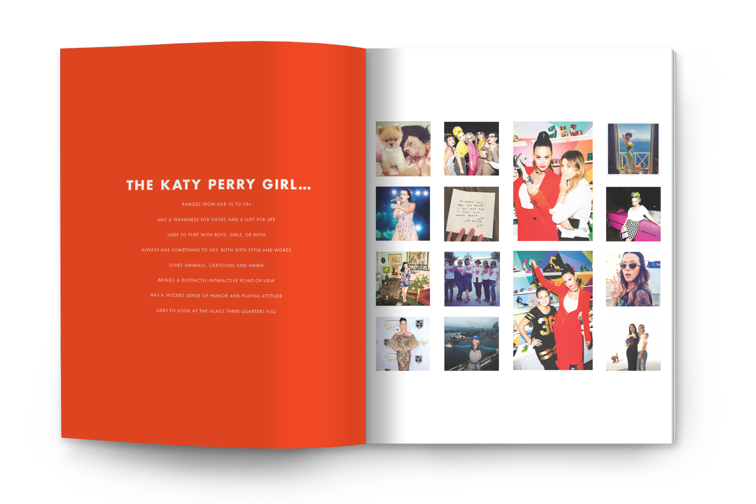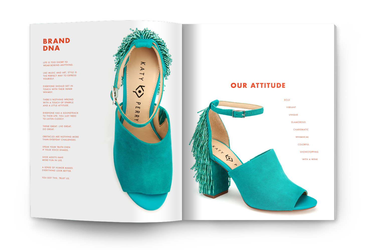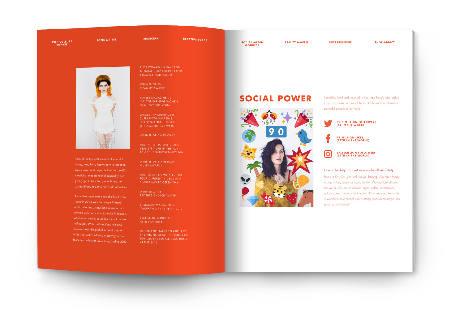 Katy Perry Collections brand book, 2016. Recap of Katy Perry's global achievements and positioning of her then newly launched shoe brand.